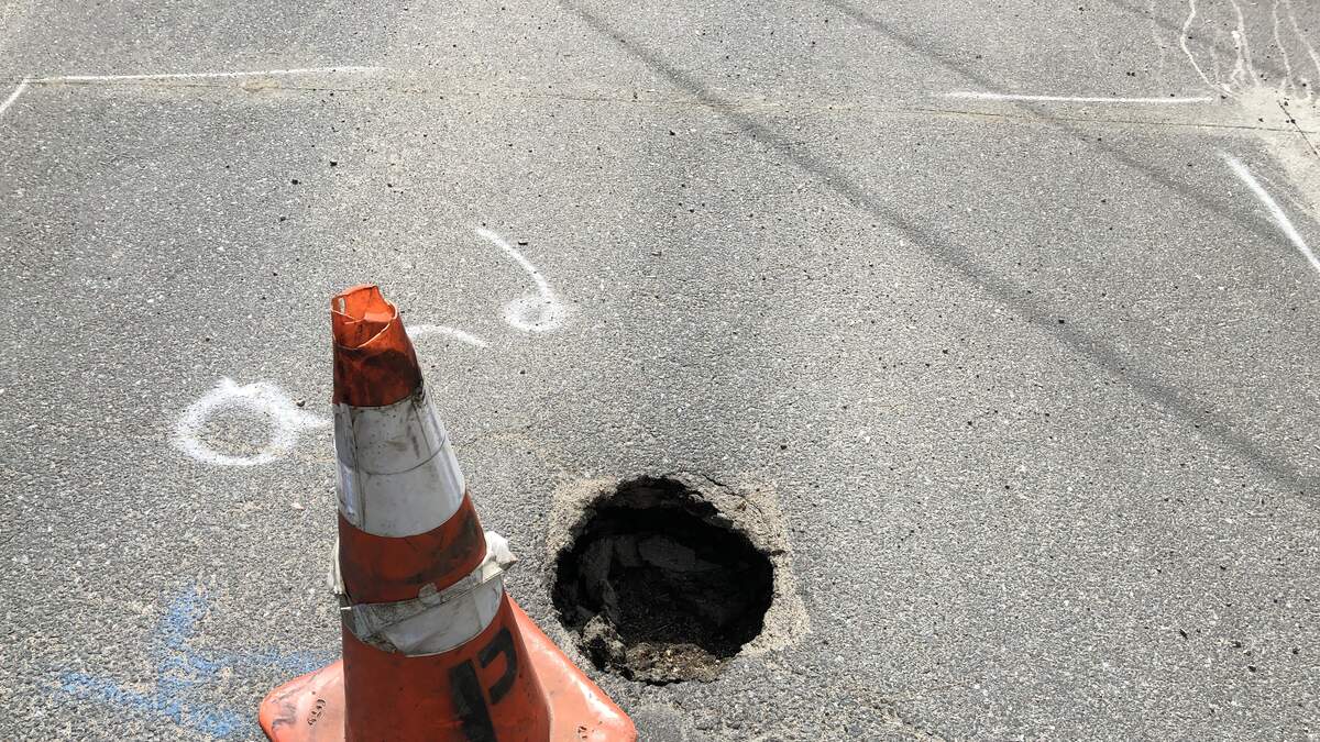 Work to stabilize the hole includes determining its size and the stability of the surrounding ground before back-filling it and repairing any disturbed ground and roadway areas.